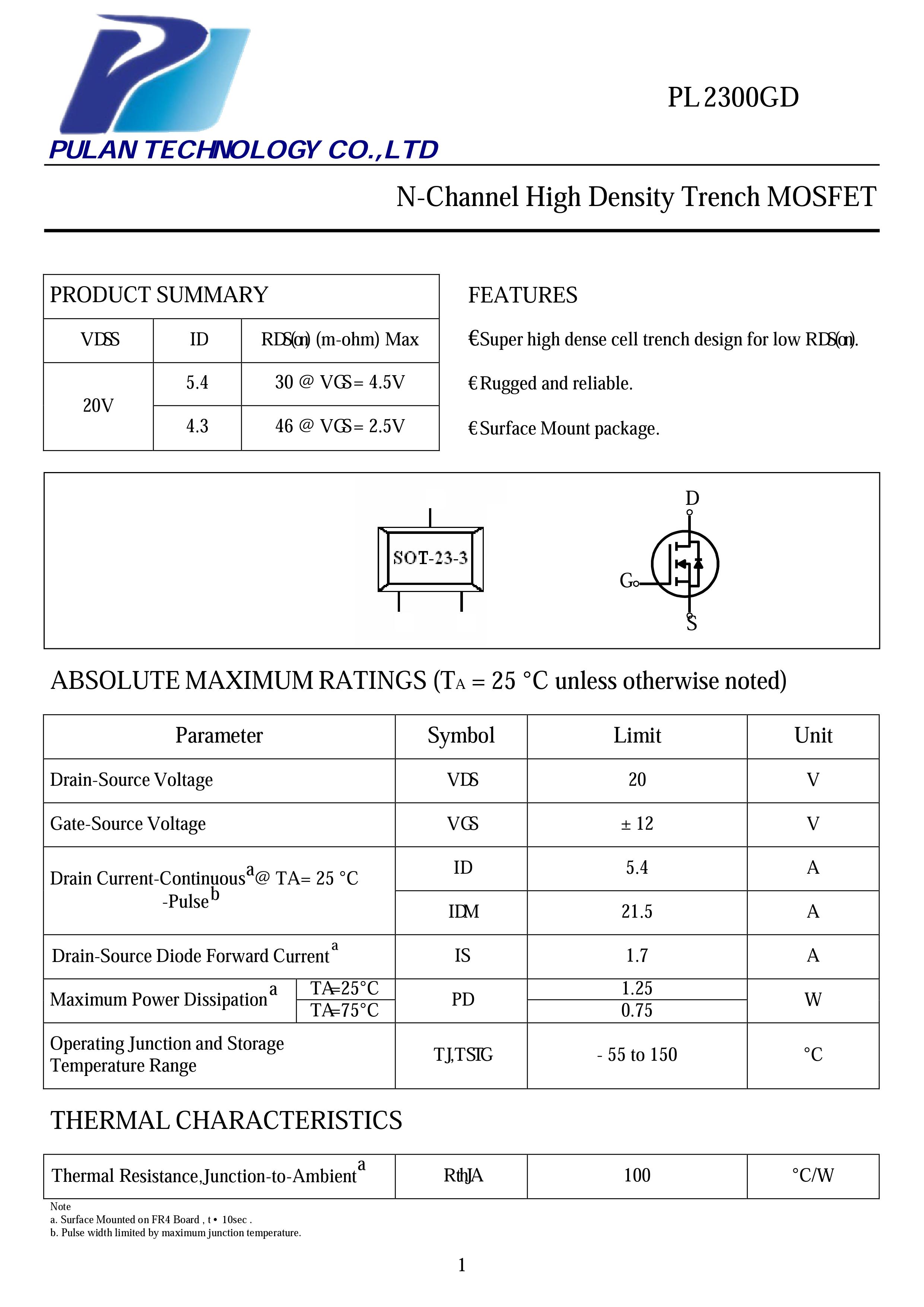 代理PL2300-NMOS(20V 5.4A)