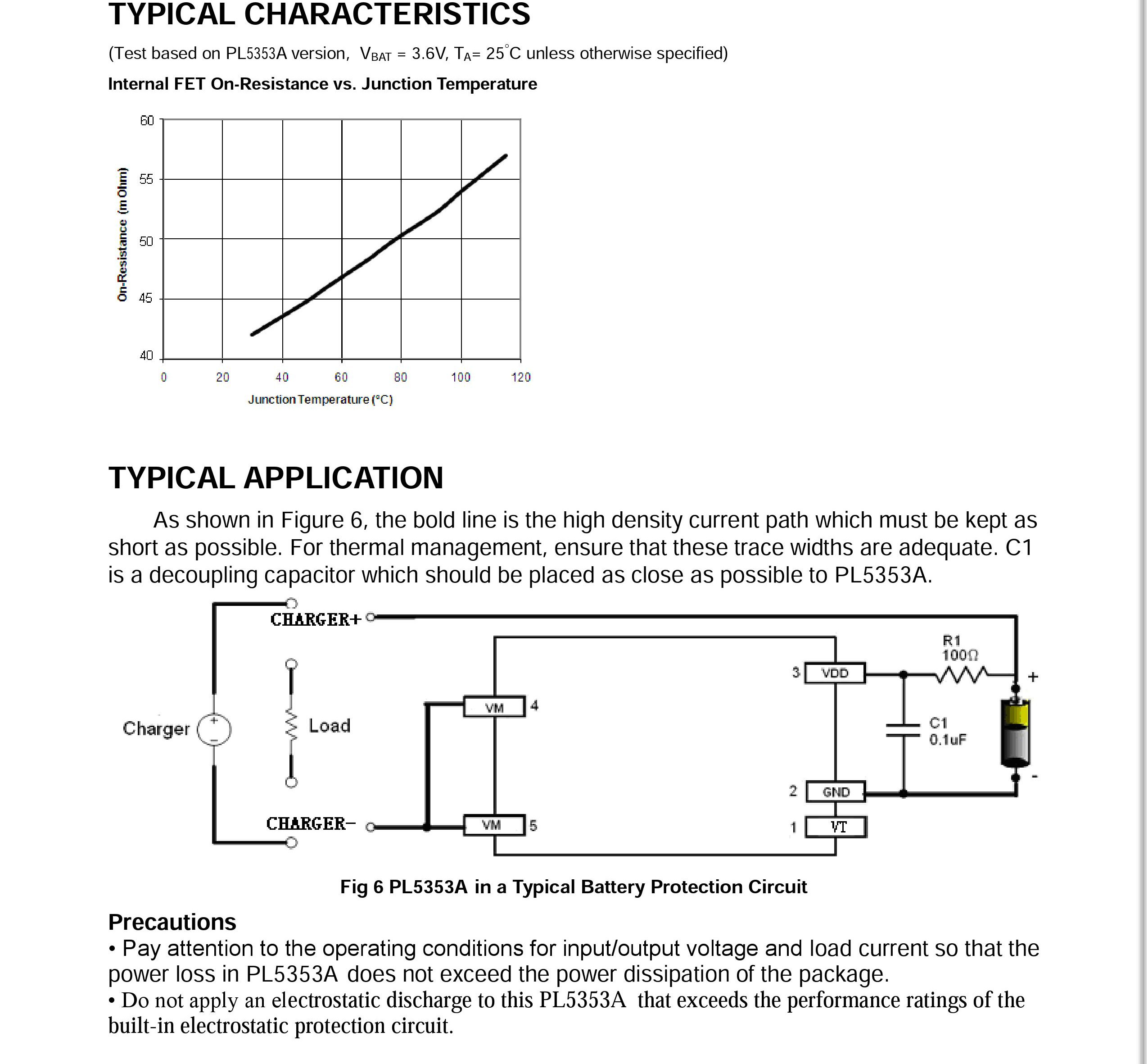 如果覺得PL5353A保護(hù)電流低,可以用DW01+8205(MOS管,可以并聯(lián)多個(gè)); 也可以看看PL5358A,外圍僅一個(gè)0.1UF的電容,SOT23-5封裝。