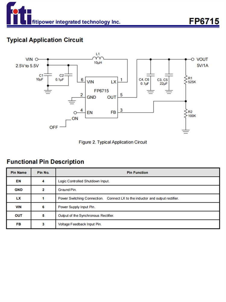 FP6715可在一個(gè)節(jié)省空間的SOT-23-6軟件包中使用,可用于便攜式應(yīng)用程序。