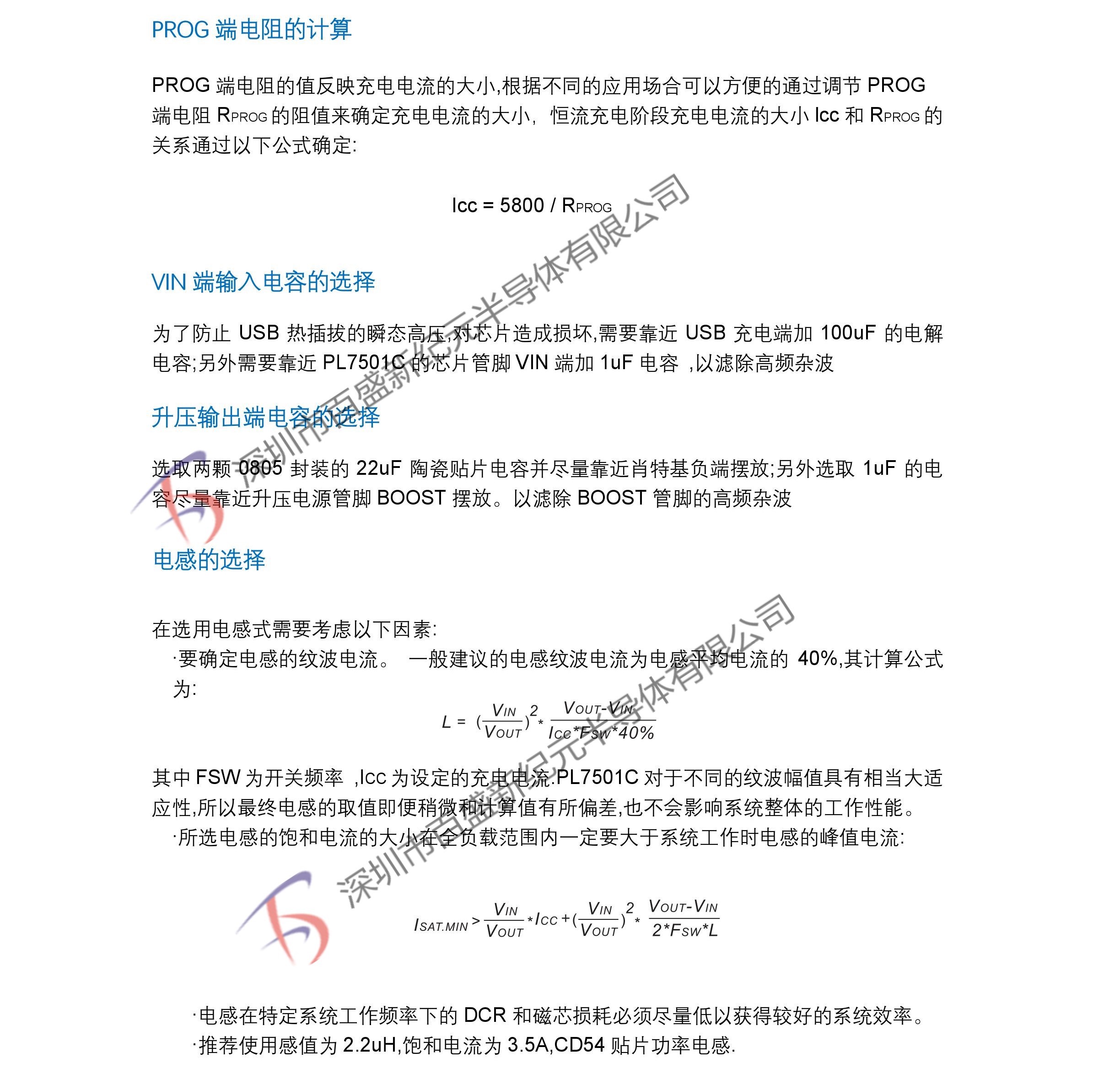 PL7501C 是一款 3.6V-5.5V 輸入, 1A 輸出,雙節(jié)鋰電池/鋰離子電池充電的異步升壓充電控制器。具有完善的充電保護(hù)功能。針對(duì)不同的應(yīng)用場(chǎng)合,芯片可以通過(guò)方便地調(diào)節(jié)外部電阻的阻值來(lái)改變充電電流的大小。針對(duì)不同種類的適配器,芯片內(nèi)置自適應(yīng)電流調(diào)節(jié)環(huán)路,智能調(diào)節(jié)充電電流大小,從而防止充電電流過(guò)大而拉掛適配器的現(xiàn)象。芯片將功率管內(nèi)置從而實(shí)現(xiàn)較少的外圍器件并節(jié)約系統(tǒng)成本。