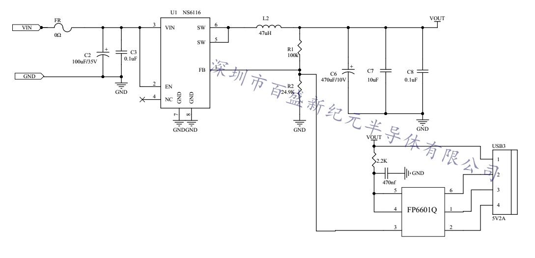 NS6116單口QC3.0智能識(shí)彆車充原理圖: