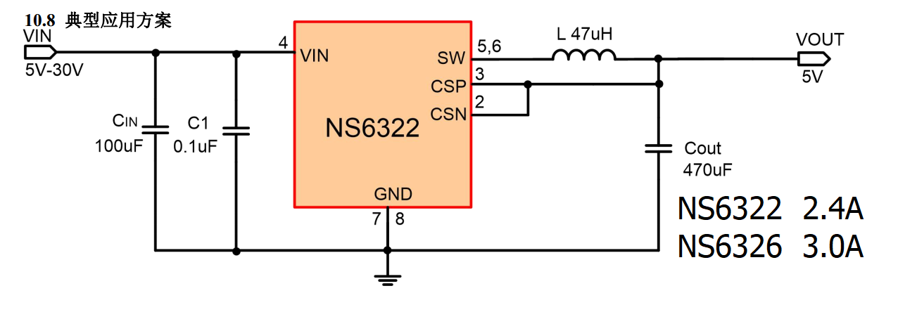 NS6322,固定輸齣電壓5V,2.4A可調(diào)恆流電流,外圍僅僅電容和電感,高集成,過EMI