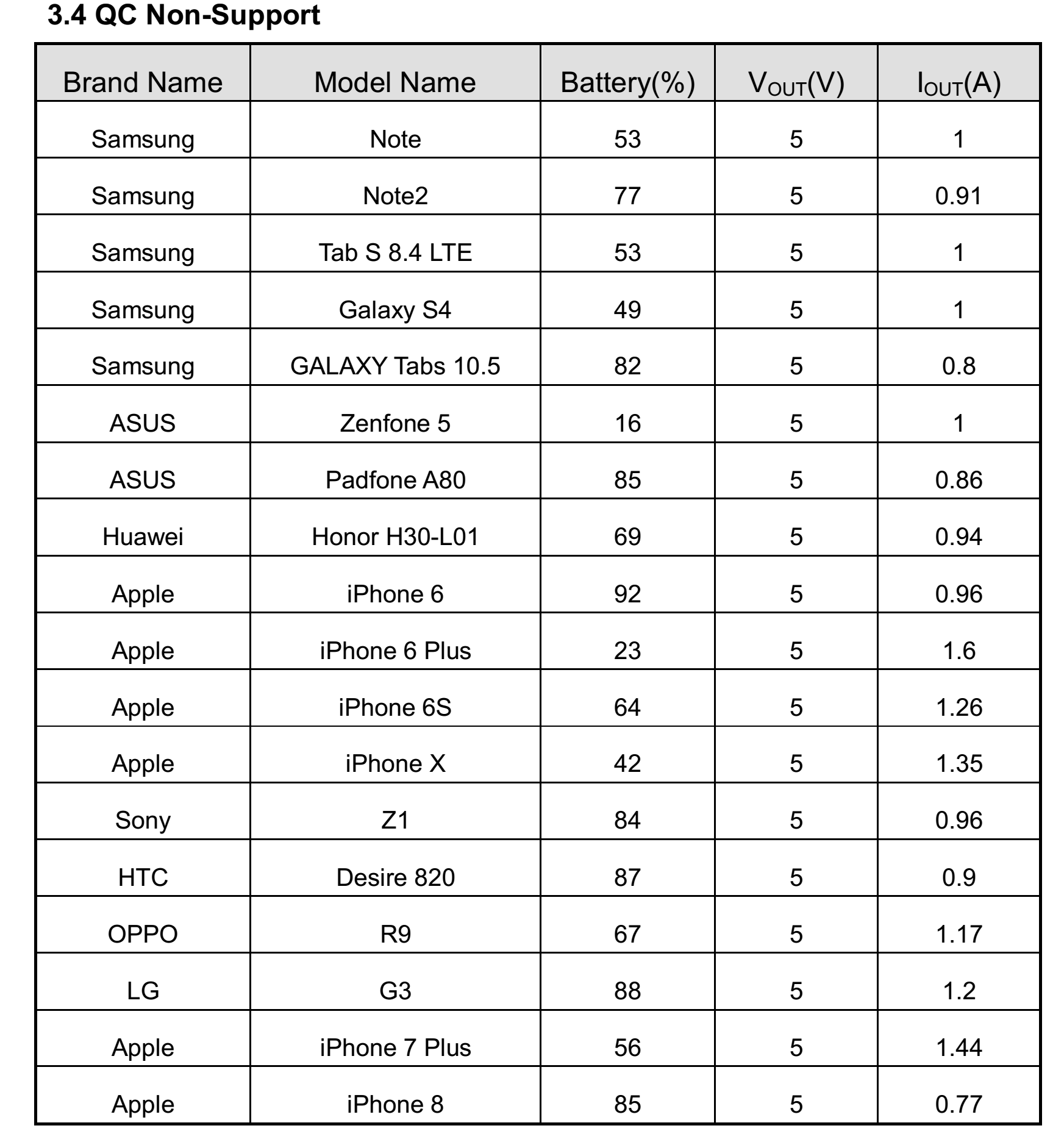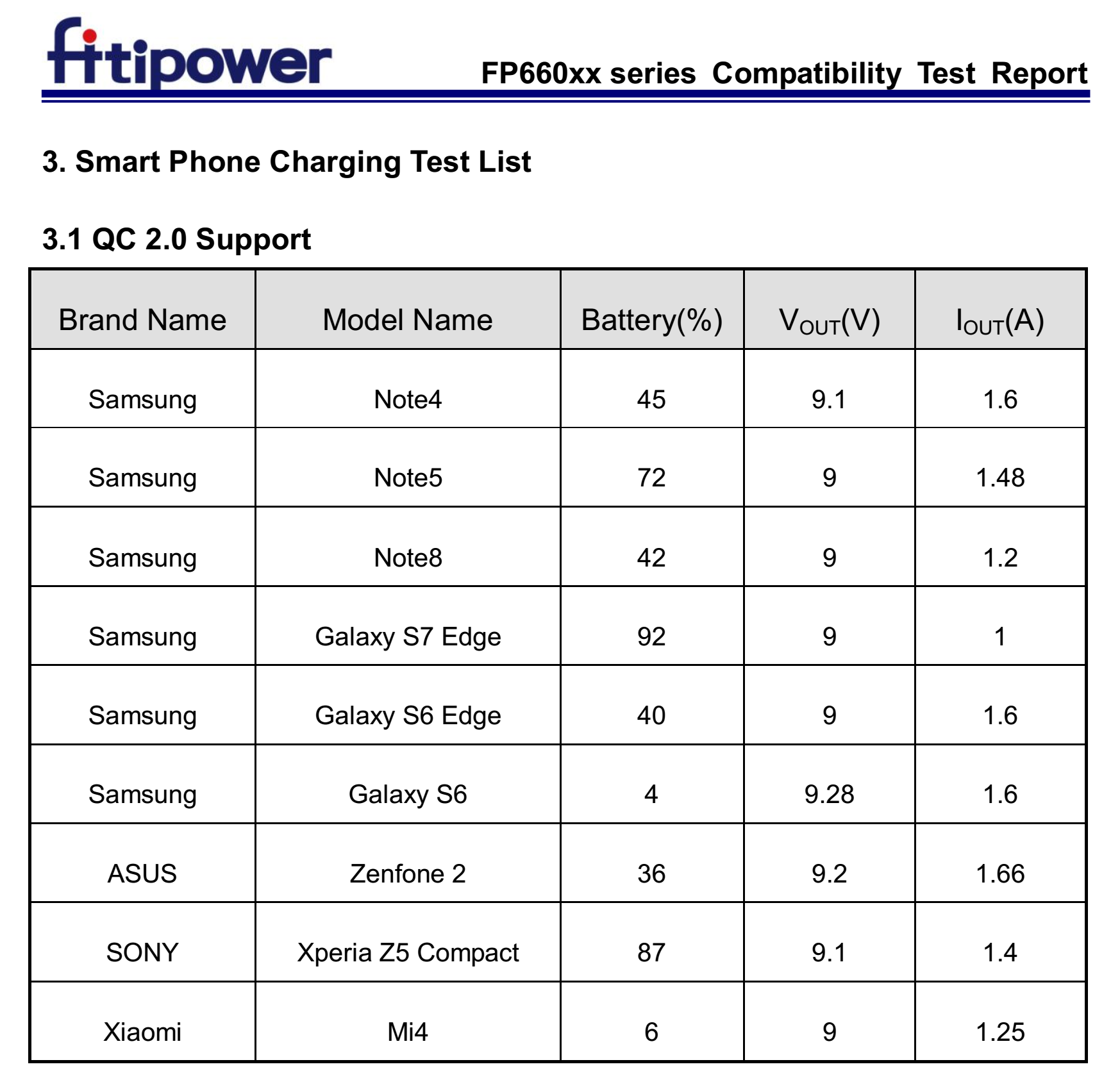 FP6600Q/FP6601Q最新手機(jī)快充測(cè)試錶格: