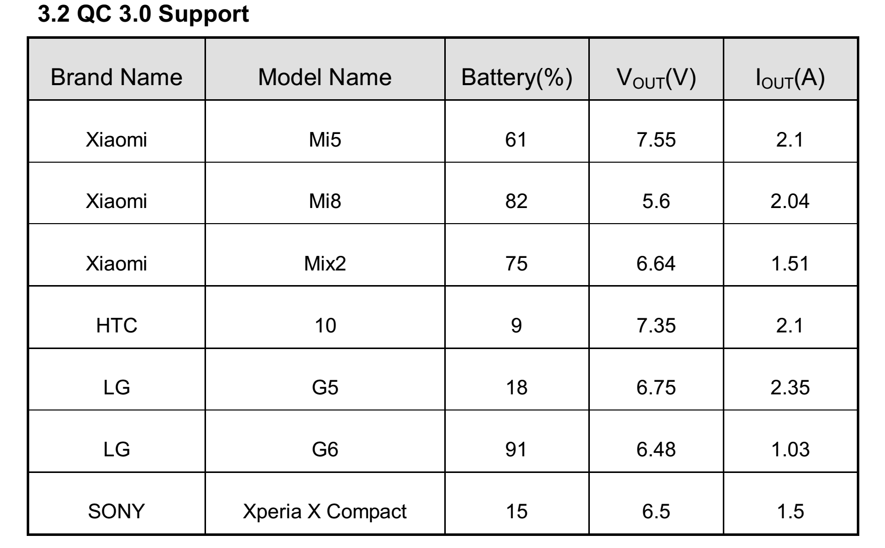 ●完全支持快速充電QC3.0,QC 2.0,華爲(wèi)海思快充FCP,三星AFC快充;