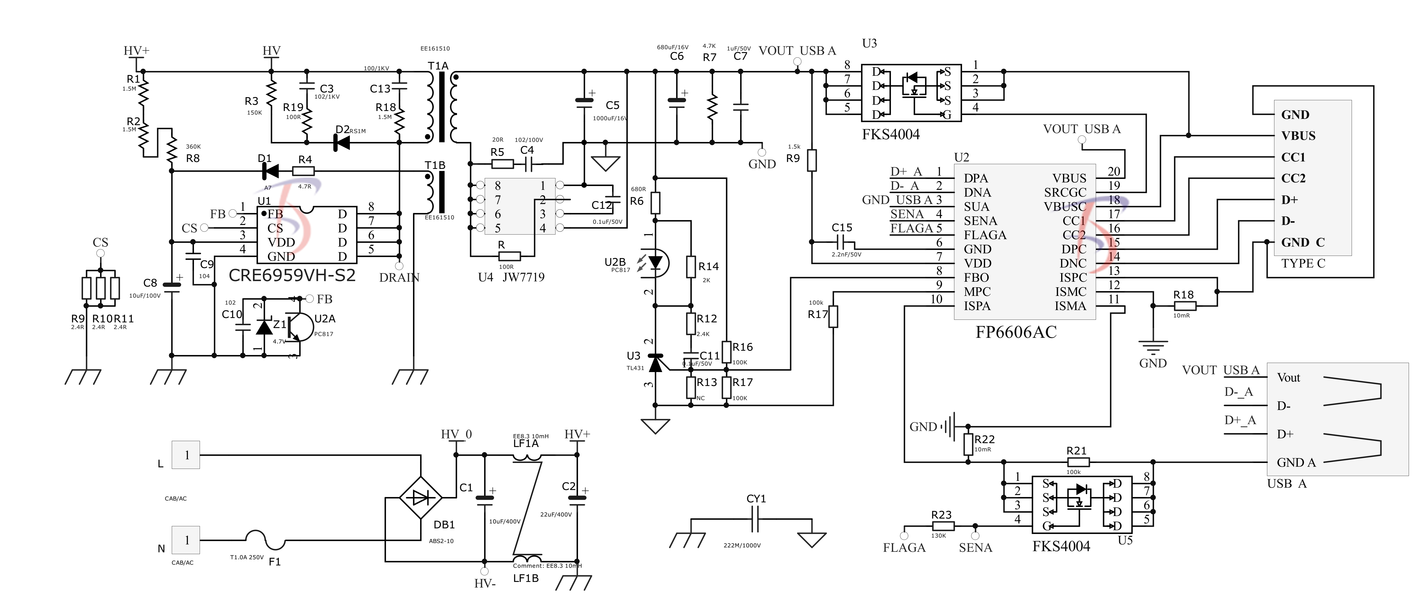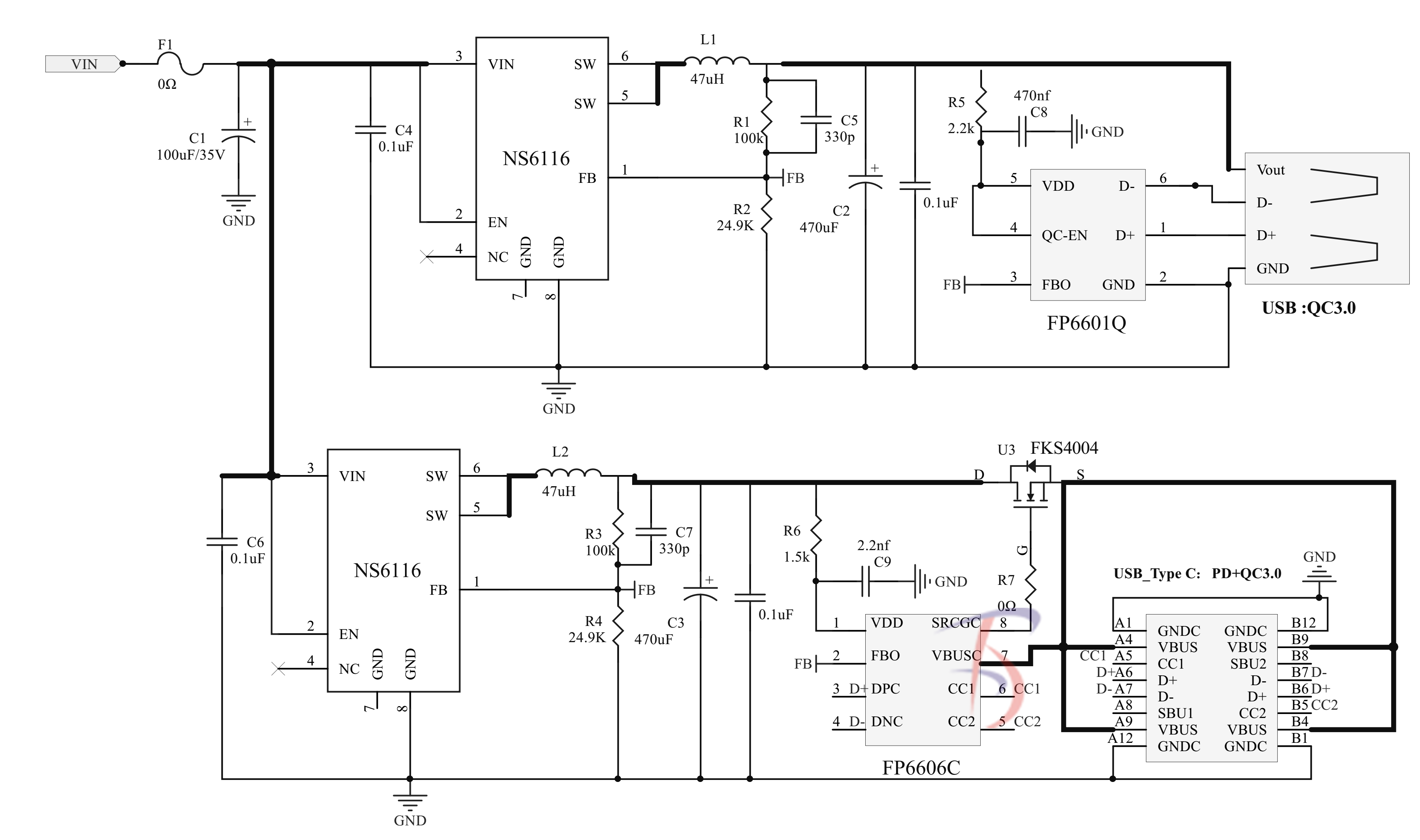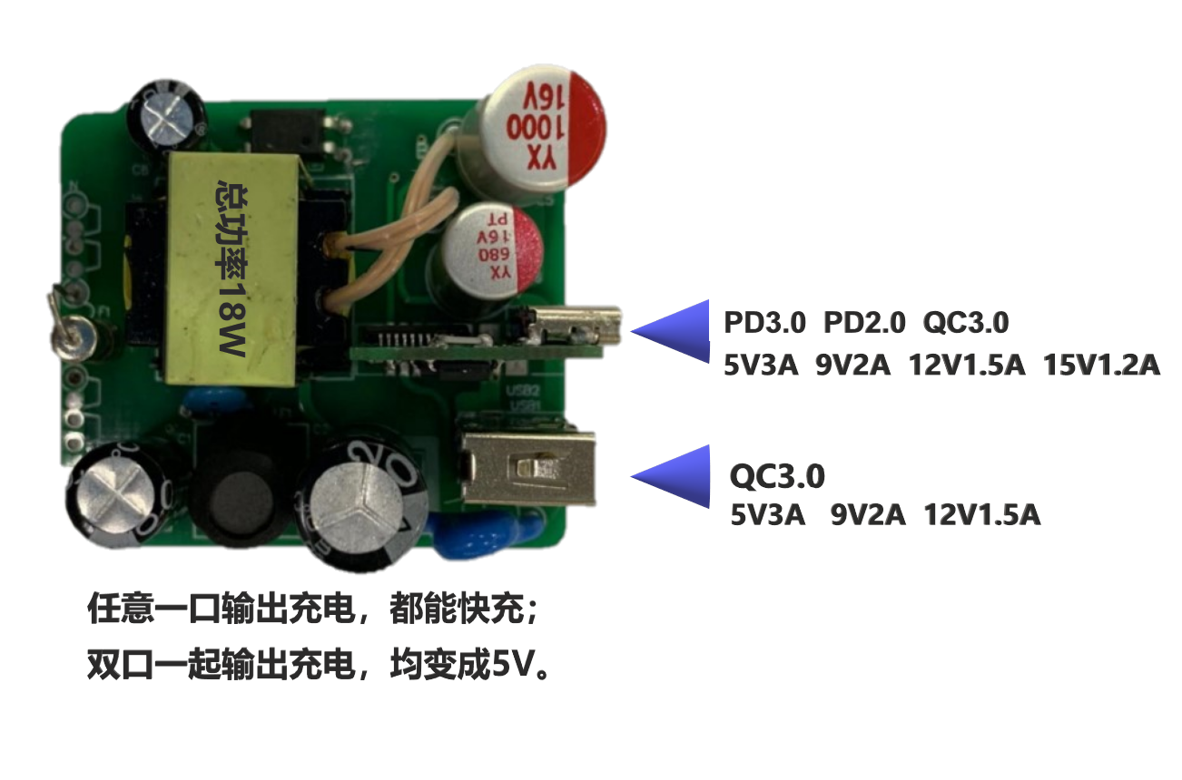 3, 雙USB口 18W PD快充協(xié)議充電適配器方案