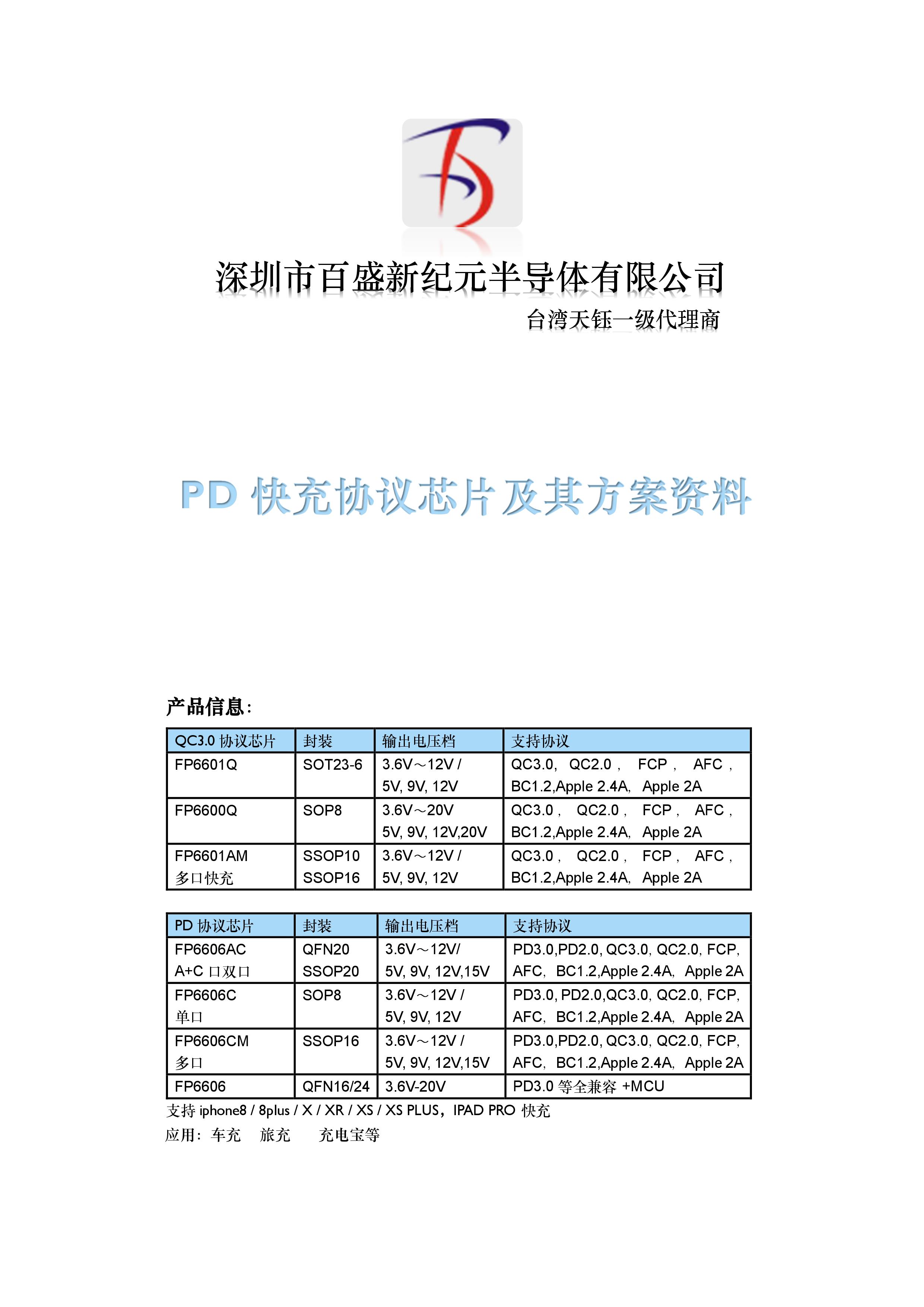 搭配FP6606C PD快充協(xié)議IC 和QC3.0快充協(xié)議IC-FP6601Q