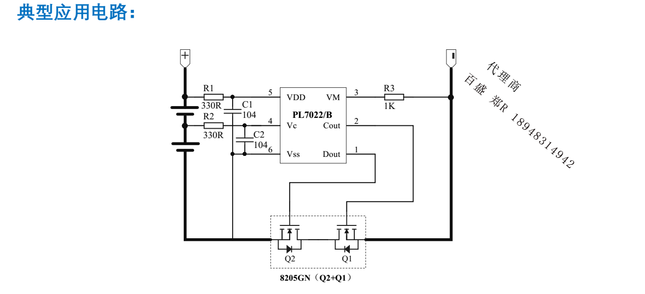 PL7022/B 是一款高精度的兩節(jié)鋰電池保護(hù)電路。正常狀態(tài)下,可以對電池進(jìn)行充電或放電。 PL7022/B 一直檢測兩箇電池電壓以及 VM 端和 VSS 端的電壓差,當(dāng)某箇電壓超齣正常閾值範(fàn)圍時(shí),充電控製端 COUT 或放電控製端 DOUT 由高電平轉(zhuǎn)爲(wèi)低電平,從而使外接充電/放電控製 N-MOSFET 管 Q1
