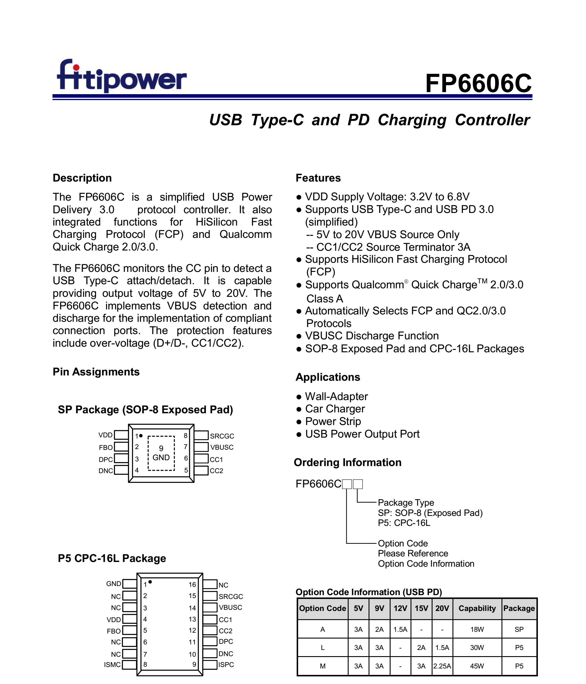 FP6606C單口18W,30W,45WPD快充協(xié)議芯片IC,F(xiàn)AE技術(shù)支持