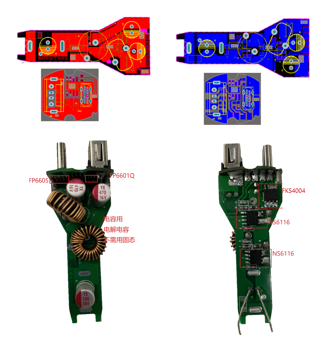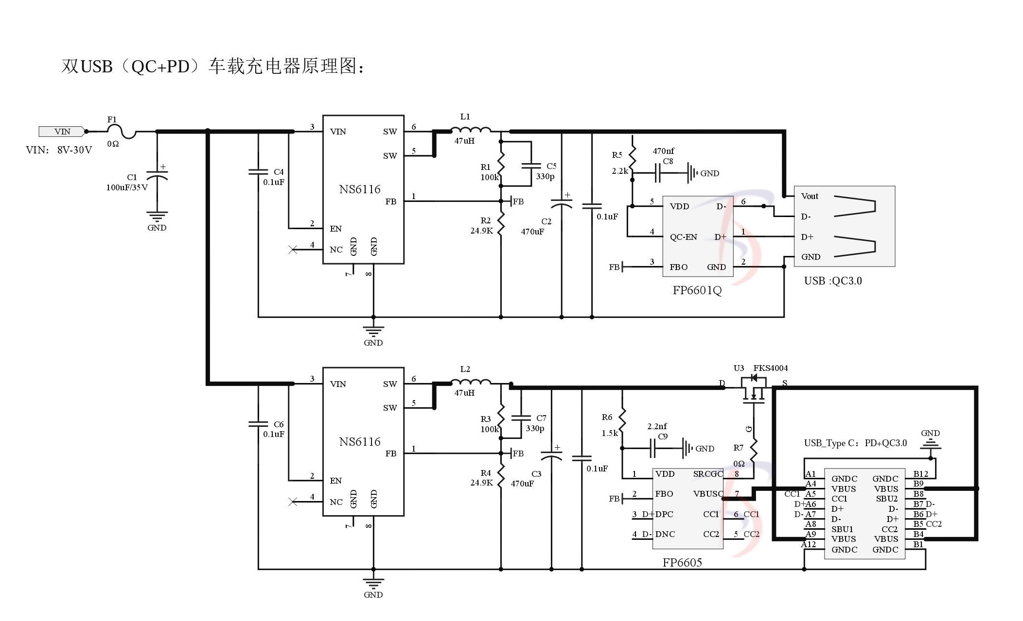 USB A口:QC3.0協(xié)議IC:FP6601Q,輸齣5V3A,9V2A,12V1.5A