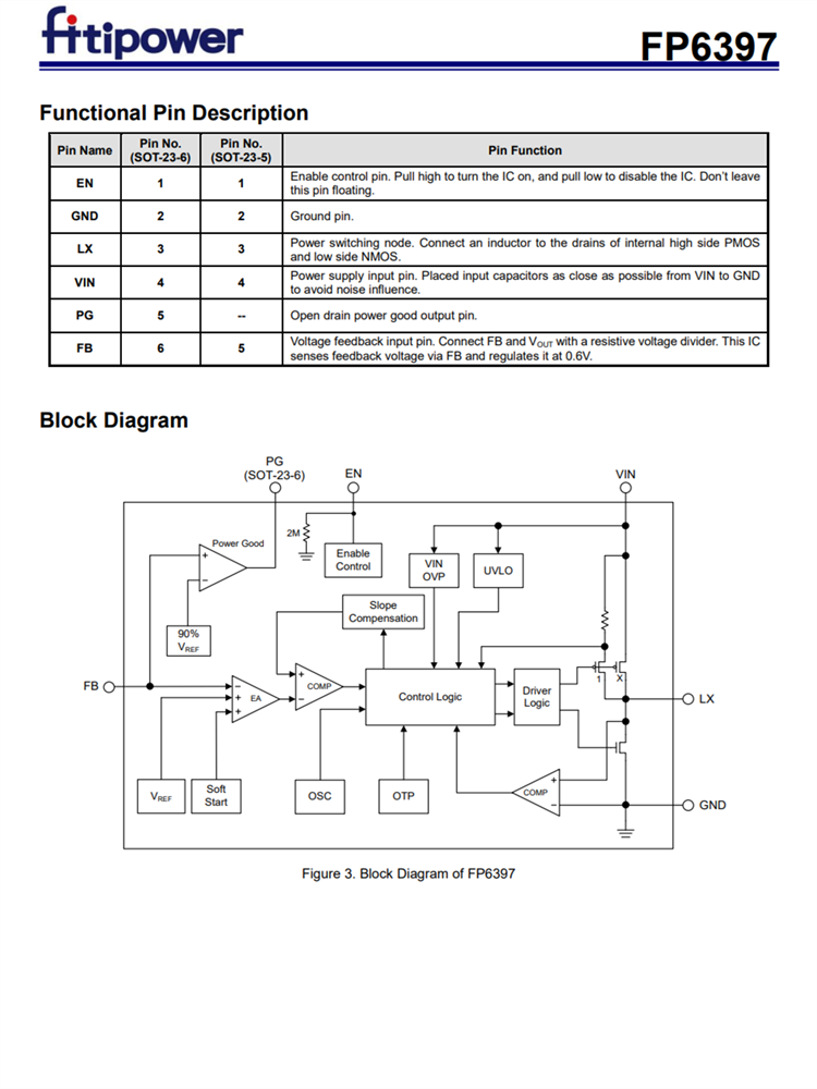 FP6397提供瞭SOT-23-5和SOT-23-6軟件包。