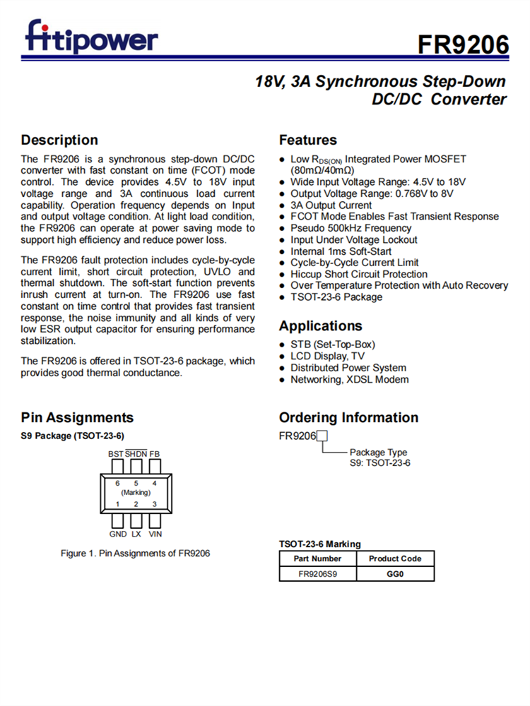 FR9206採用TSOT-23-6封裝,提供良好的導熱性。