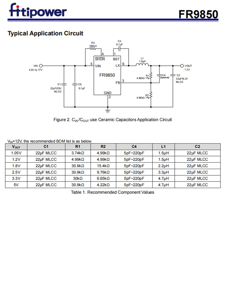FR9850是一種衕步降壓DC/DC轉(zhuǎn)換器,具有快速恆定的時(shí)間(FCOT)模式控製。該裝置提供4.5V至17V的輸入電壓範(fàn)圍和2A的連續(xù)負(fù)載電流能力。工作頻率取決於輸入和輸齣電壓條件。在輕負(fù)荷條件下,FR9850可以在省電模式,以支持高效率和減少功率損耗。