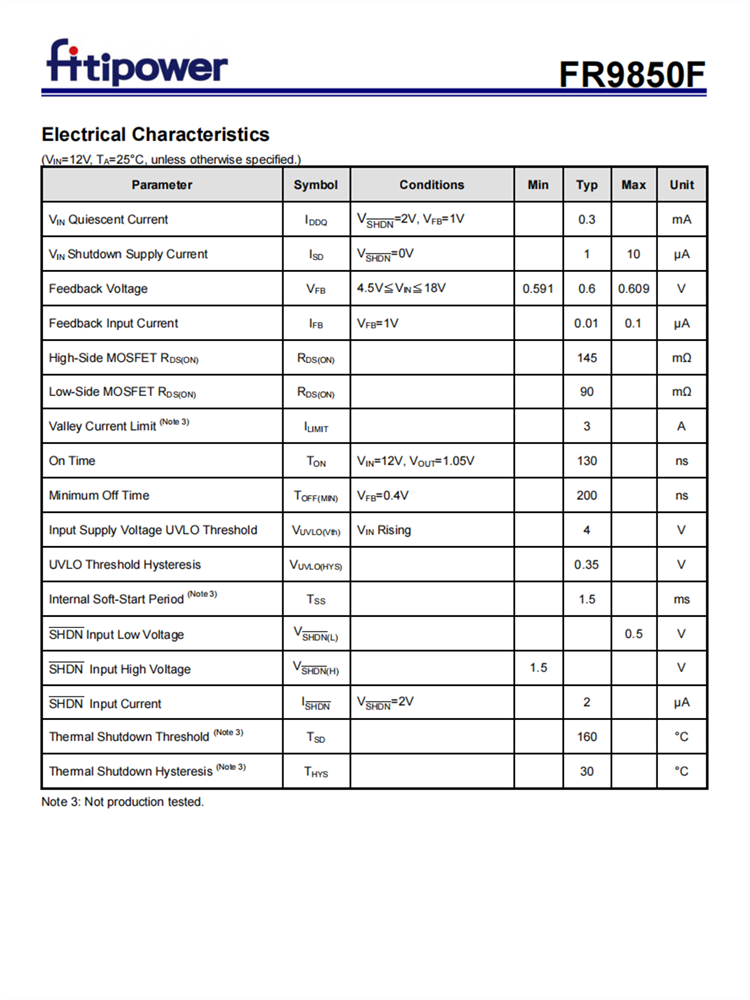 FR9850F故障保護包括逐循環(huán)電流限製、短路保護、UVLO和熱停機。軟啟動功能防止開啟時湧電流。FR9850F採用快速常數(shù)的時間控製,提供快速的瞬態(tài)響應,抗噪聲性和各種非常低的ESR輸齣電容器,以確保性能穩(wěn)定。