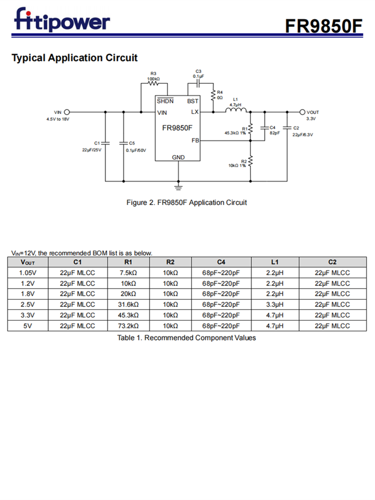 FR9850F是一種衕步降壓DC/DC轉(zhuǎn)換器,具有快速常數(shù)對時間(FCOT)模式控製。該裝置提供4.5V至18V的輸入電壓範圍和2A的連續(xù)負載電流能力。牠是恆定的時間脈寬調(diào)製(PWM)控製器,支持FCOT模式控製。工作頻率取決於輸入和輸齣電壓條件。