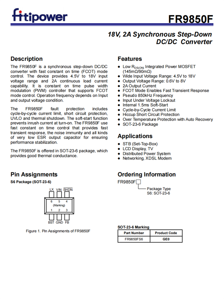 FR9850F採用SOT-23-6封裝,提供良好的導熱性。