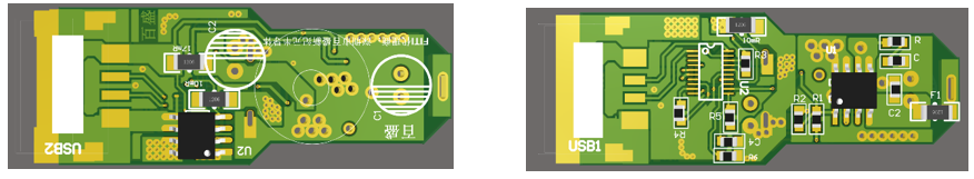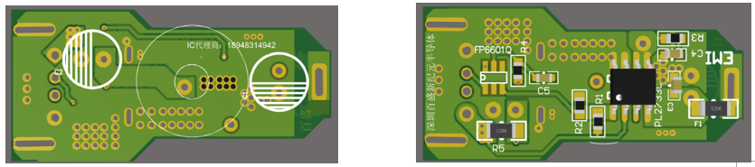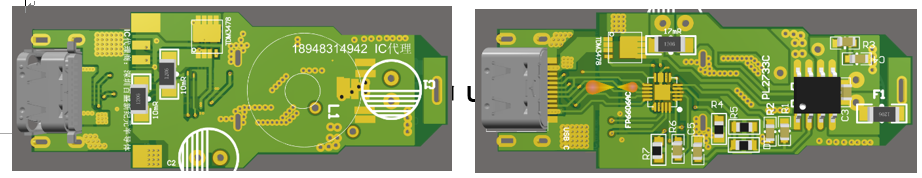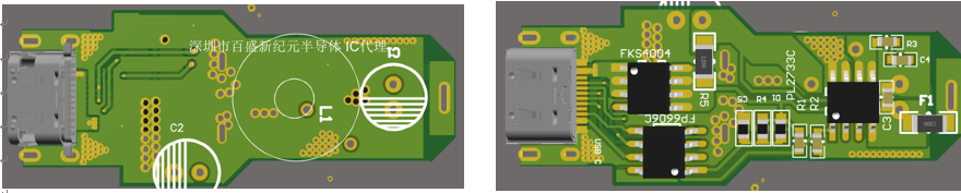 PL2733C和FP6606C的PCB正麵 PL2733C和FP6606C的PCB背麵