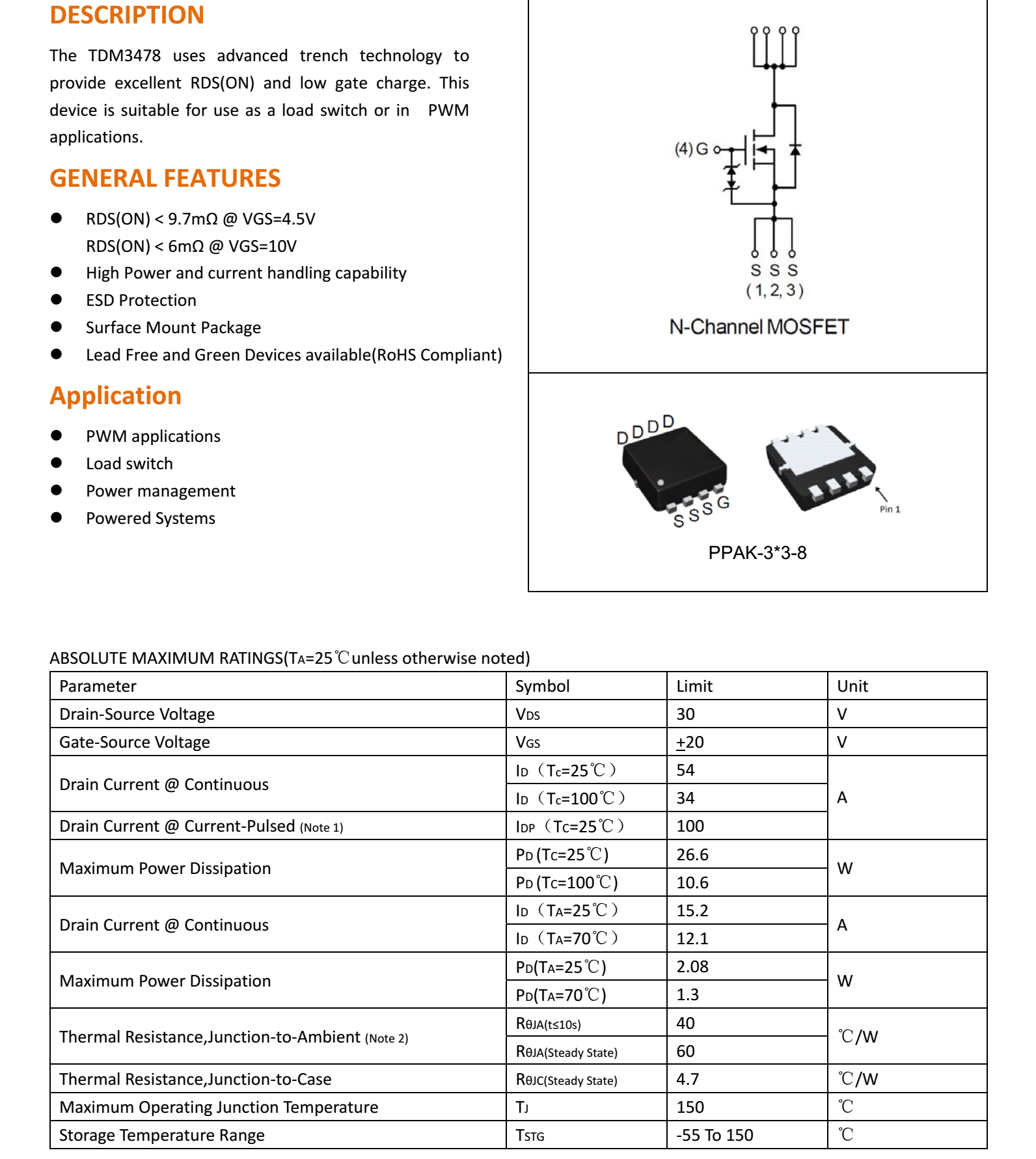 TDM3478高VGS電壓版MOS,低內(nèi)阻